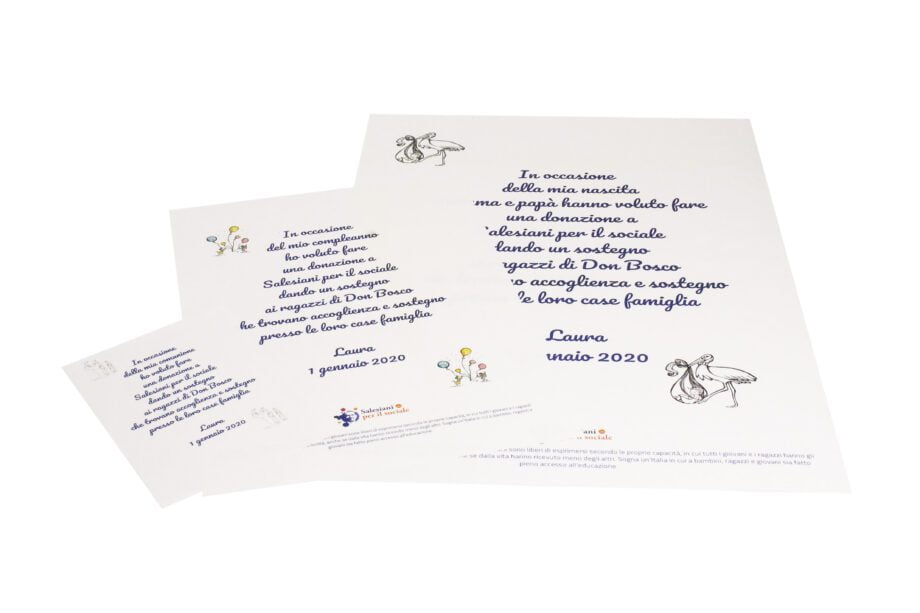Pensate per celebrare tutte le tappe importanti della vita, dalla nascita fino all’anniversario di matrimonio, le pergamene illustrate sono disponibili su carta avorio o dorata e decorate dalla creatività elegante e originale di Essegì.